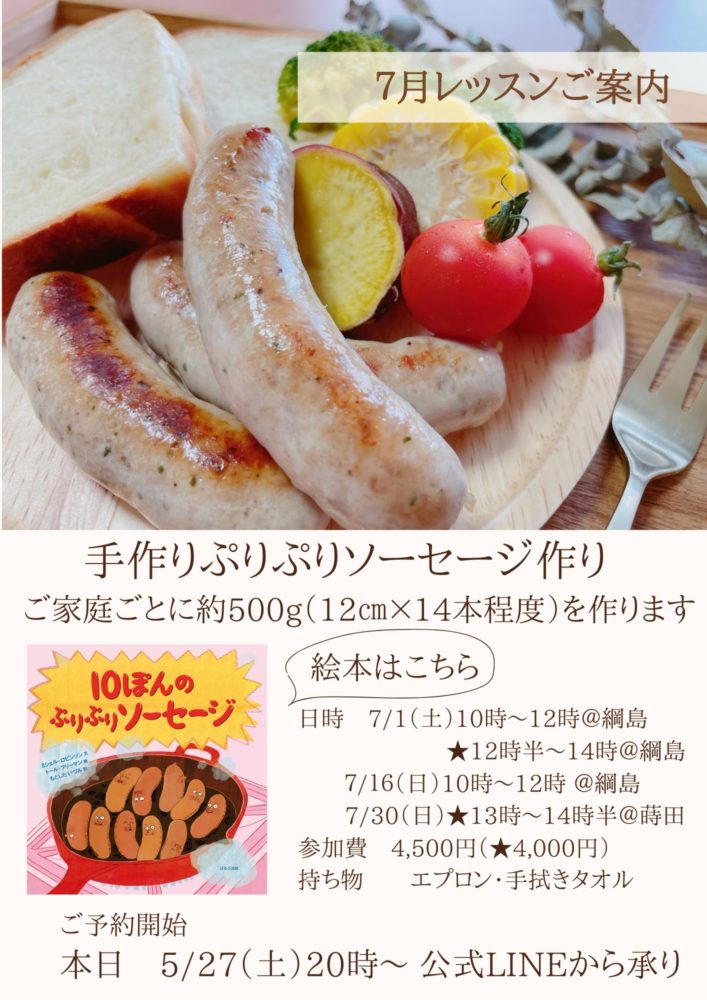 ※各自作った手作りソーセージ(500g程度)は持ち帰りいただけます。